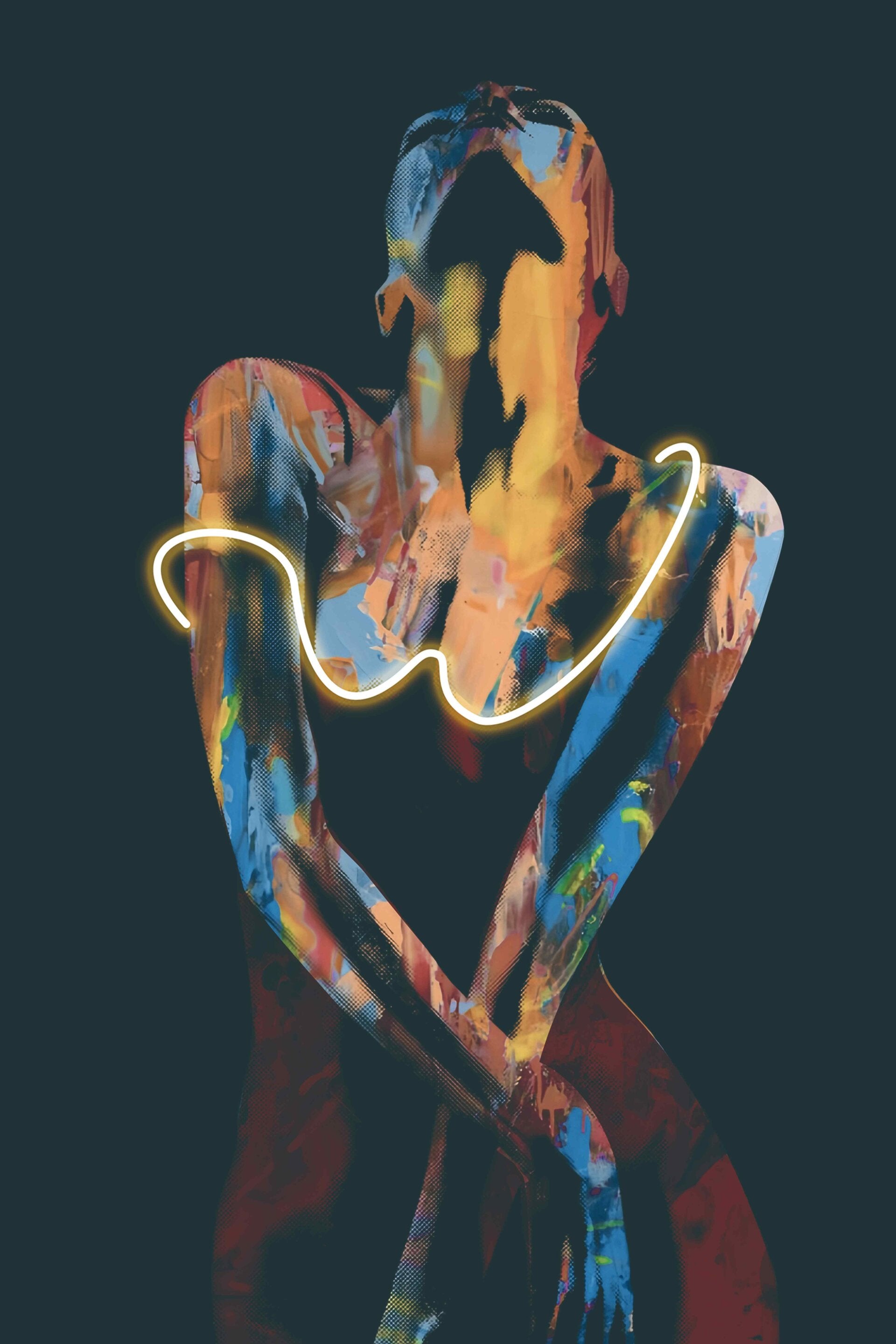 Modern expressionism, neon contemporary art, and abstract figurative style