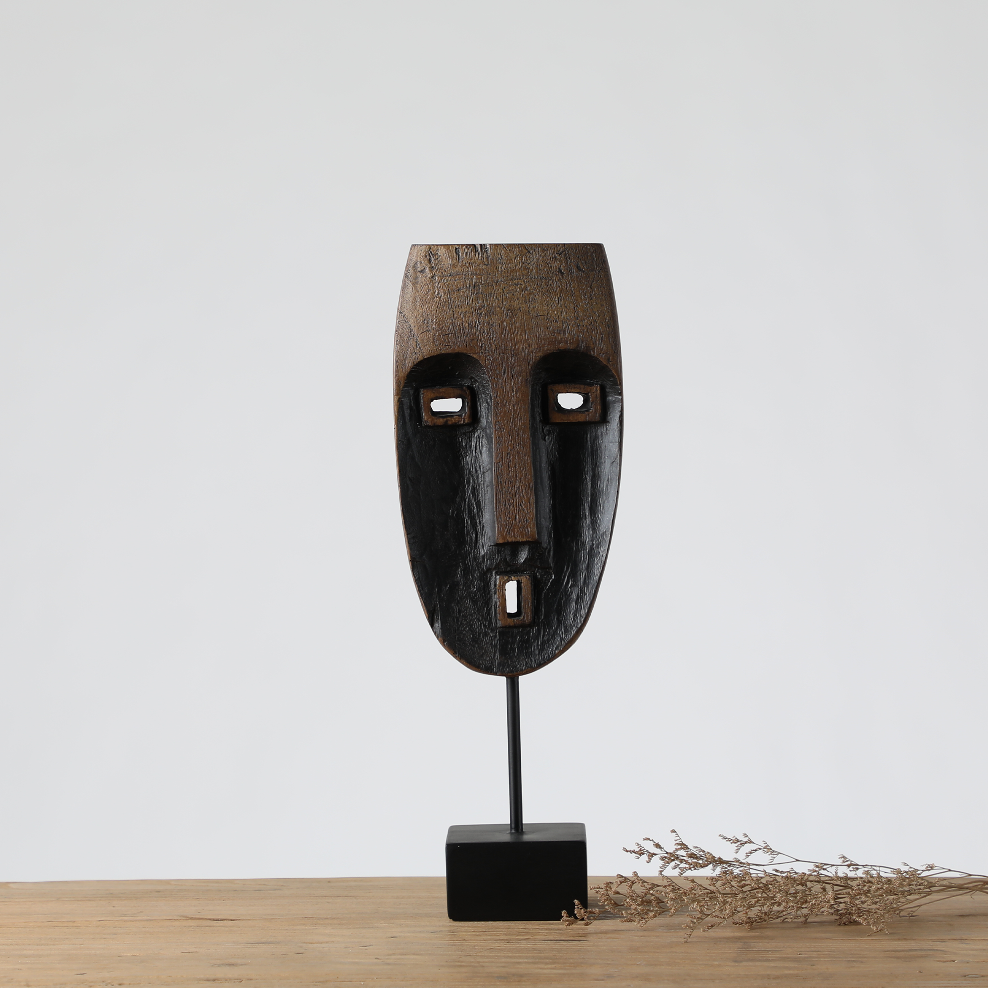 Tribal, artisanal, and modern ethnic-inspired,hand-carved, tribal mask design, sculpture