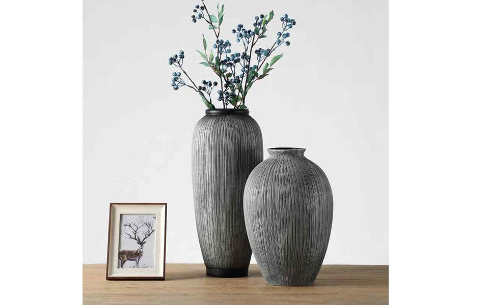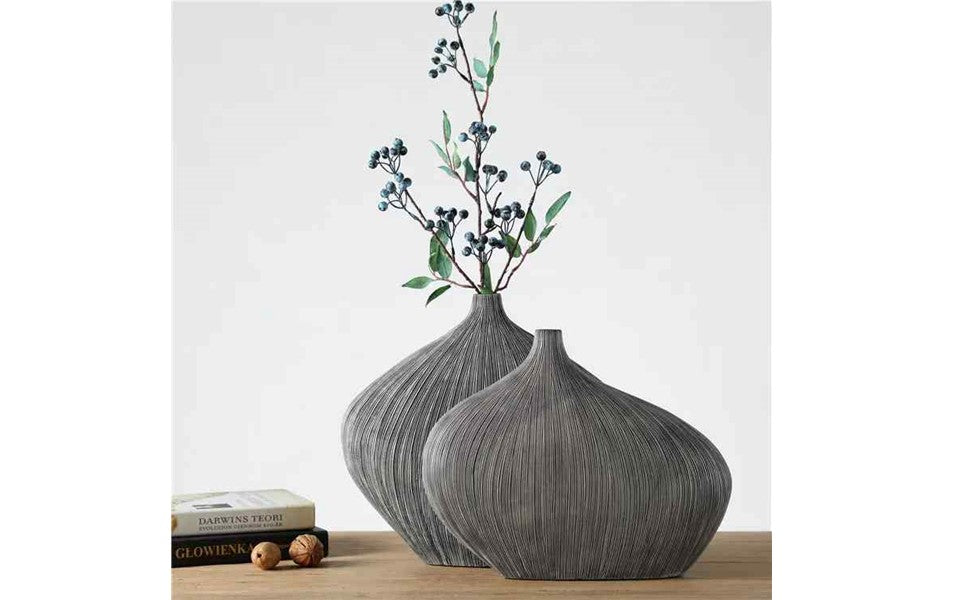 Coastal, organic modern, and rustic-inspired,textured, ribbed surface, vase