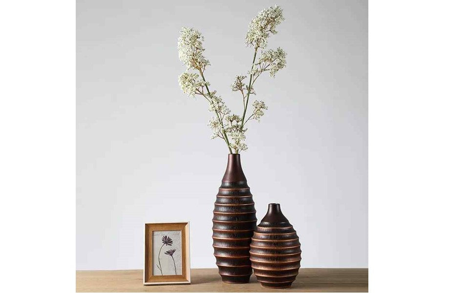 Rustic, tribal, and artisanal-inspired, ribbed, textured surface, vase