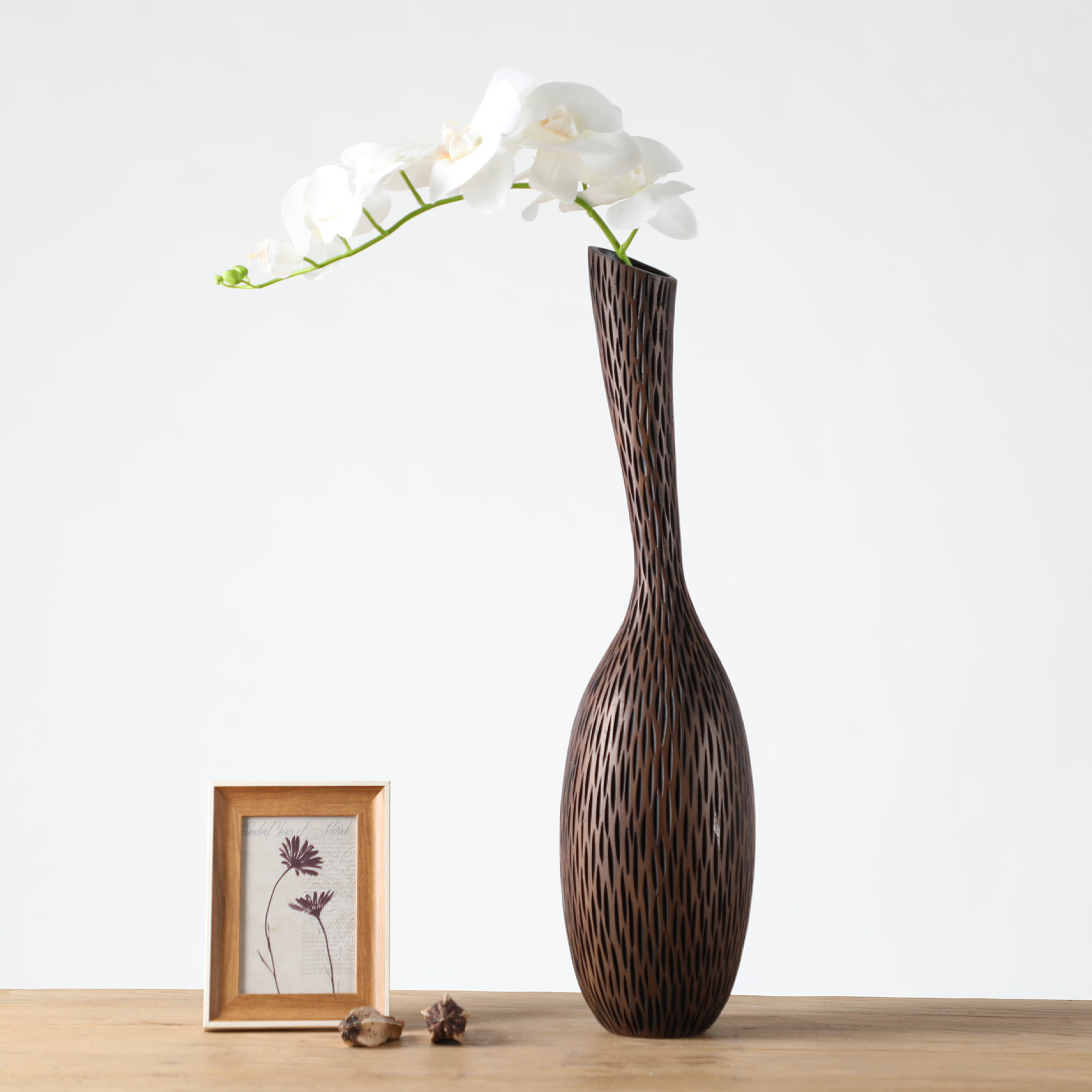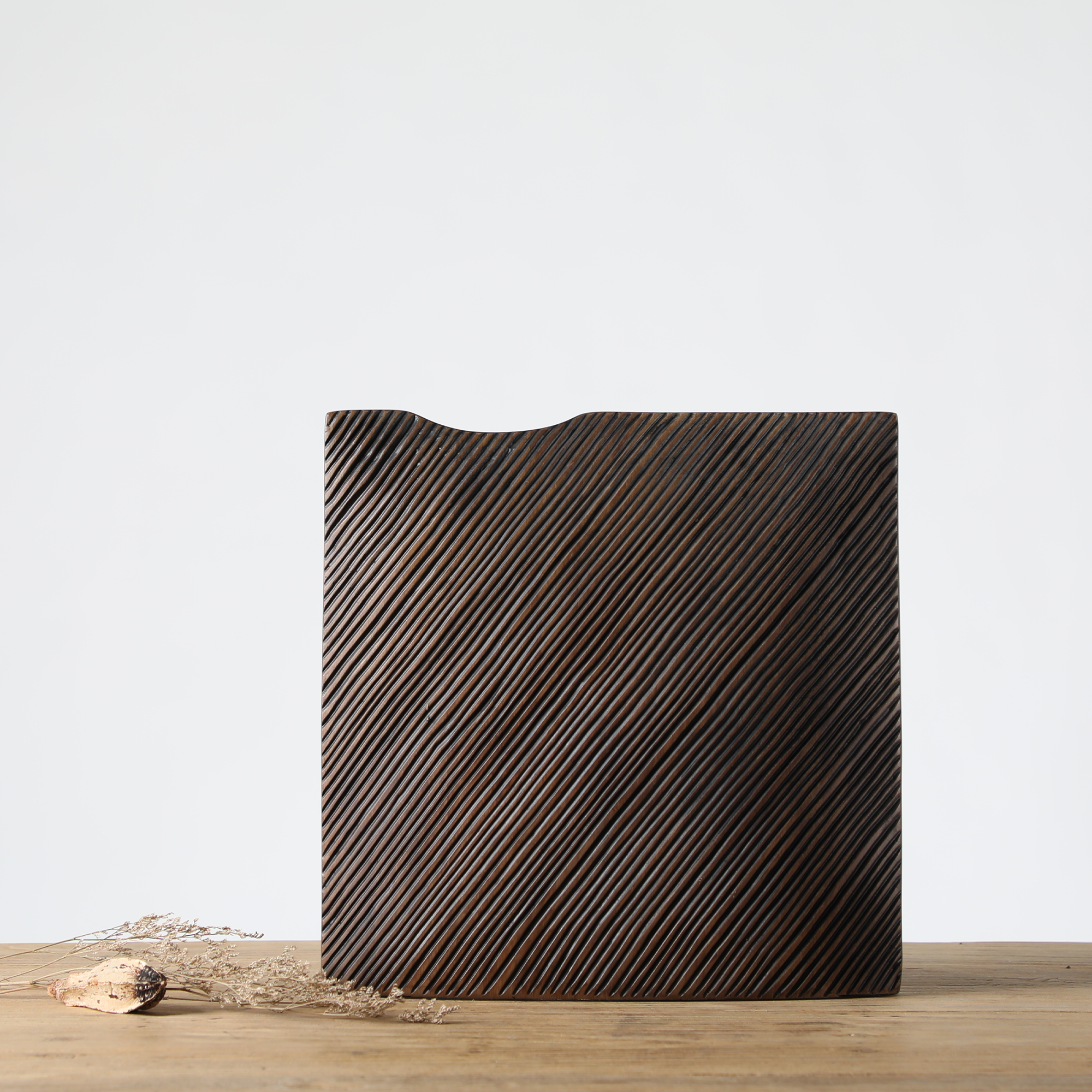 Modern organic, minimalist, and japandi-inspired,textured vertical lines, vase