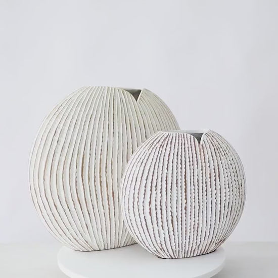 - Textured, Ribbed Surface – The vertical ridges with a dotted pattern give it a handcrafted, artisanal quality, reminiscent of natural sea urchins or woven rattan.