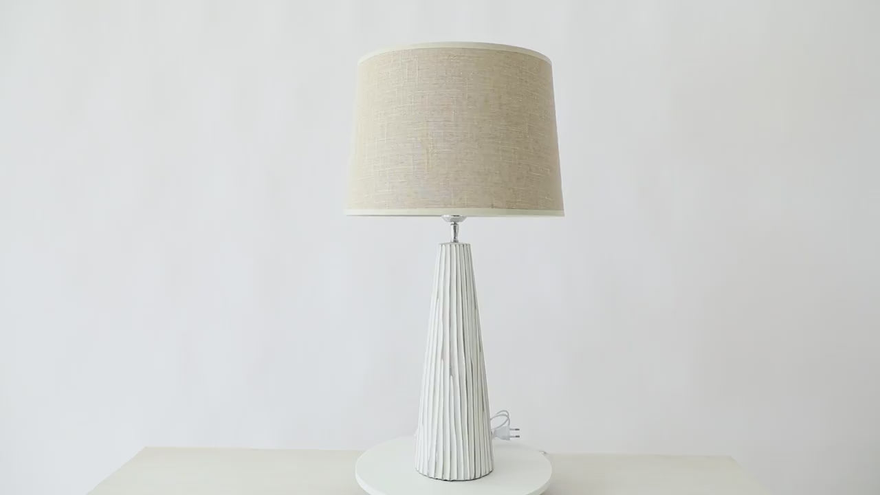 - Neutral, Earthy Color Palette – The combination of white/cream tones on the base and the warm brown fabric lampshade creates a cozy, inviting ambiance.