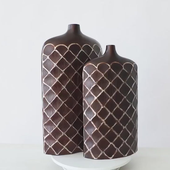 Modern tribal, Rustic, and contemporary artisan-inspired,Flat, Rectangular Form with a Slim Neck vase