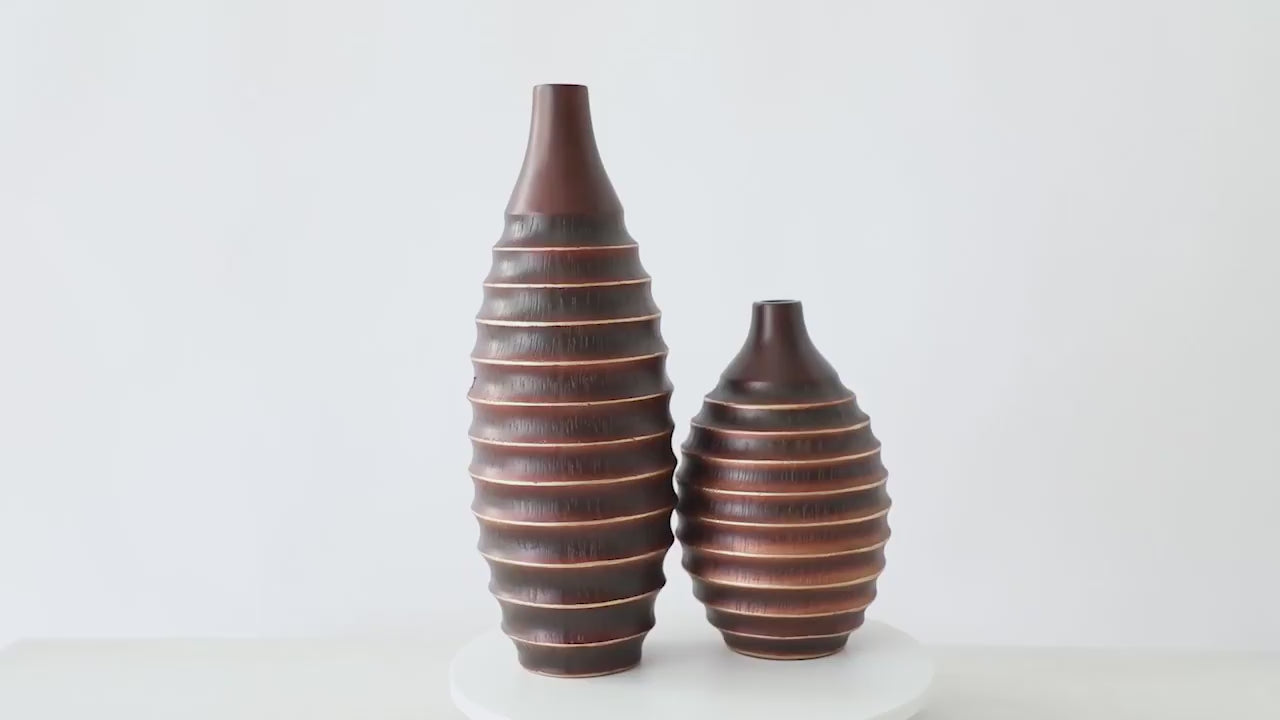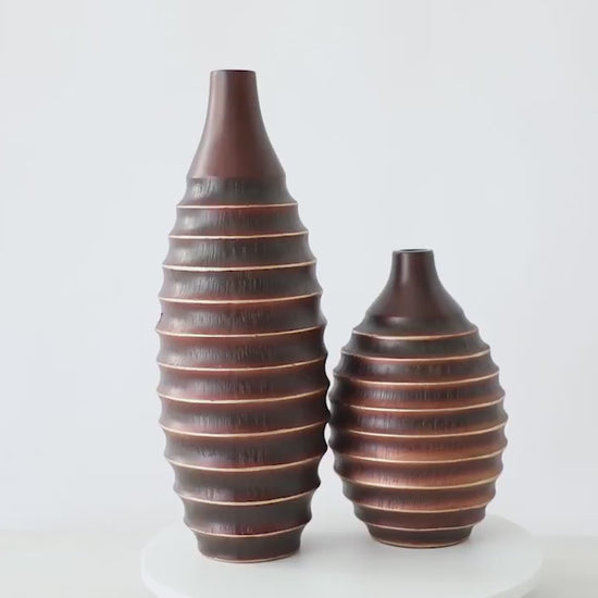 - Ribbed, Textured Surface – The vase features a series of symmetrical, ridged layers that create a sculptural and dynamic appearance, reminiscent of handcrafted pottery.